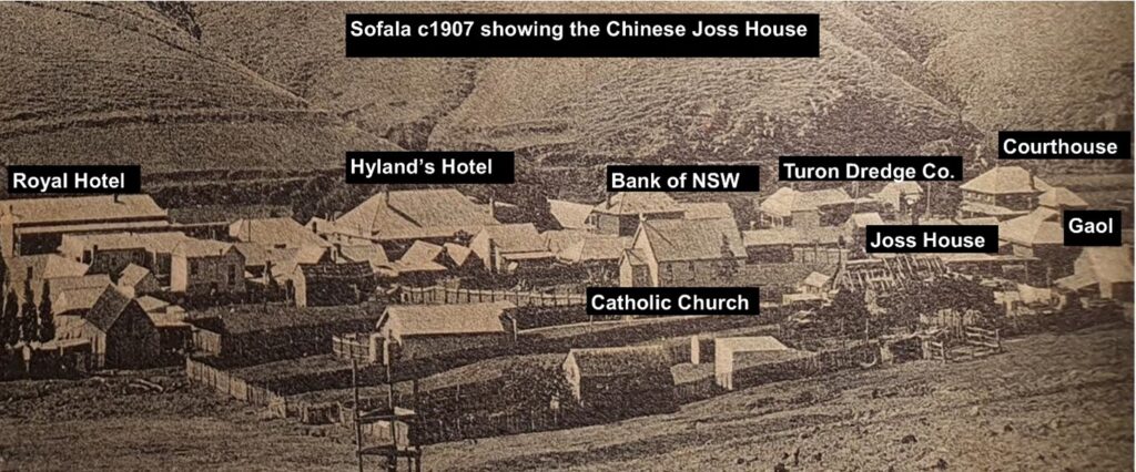 By July 1856, Commissioner Johnson reported that 150 Chinese had arrived at Sofala and stated that “they are a patient, industrious race who do well where the Europeans cannot.” In 1861 there was a population of 1,877 Chinese (42%) in Sofala. The police records and Gold Commissioner’s evidence show they were mainly law-abiding.