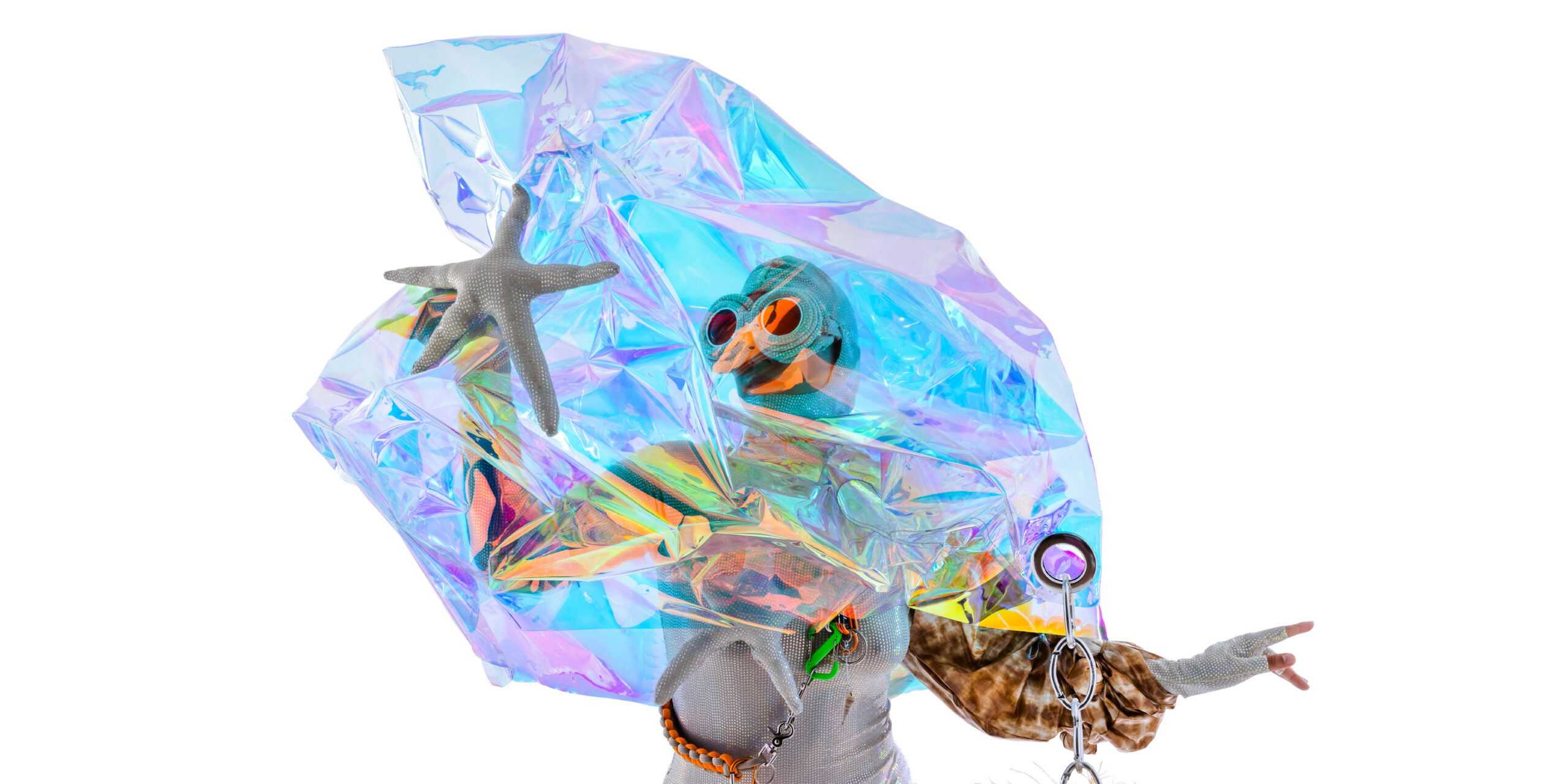 ESSSENSSSE is an aquatic ecosystem that explores the tenacity of the human spirit, stripping away corporeal human qualities and revealing what’s underneath. ESSSENSSSE follows HOSSEI’s exploration of creating costumes that ‘heal’. Featuring a cast of 16 other-worldly sea creatures, ESSSENSSSE transitions from a series of dynamic and joyful performances into a sensory, large-scale installation, in which visitors are surrounded by a playful, 100% tactile landscape.
